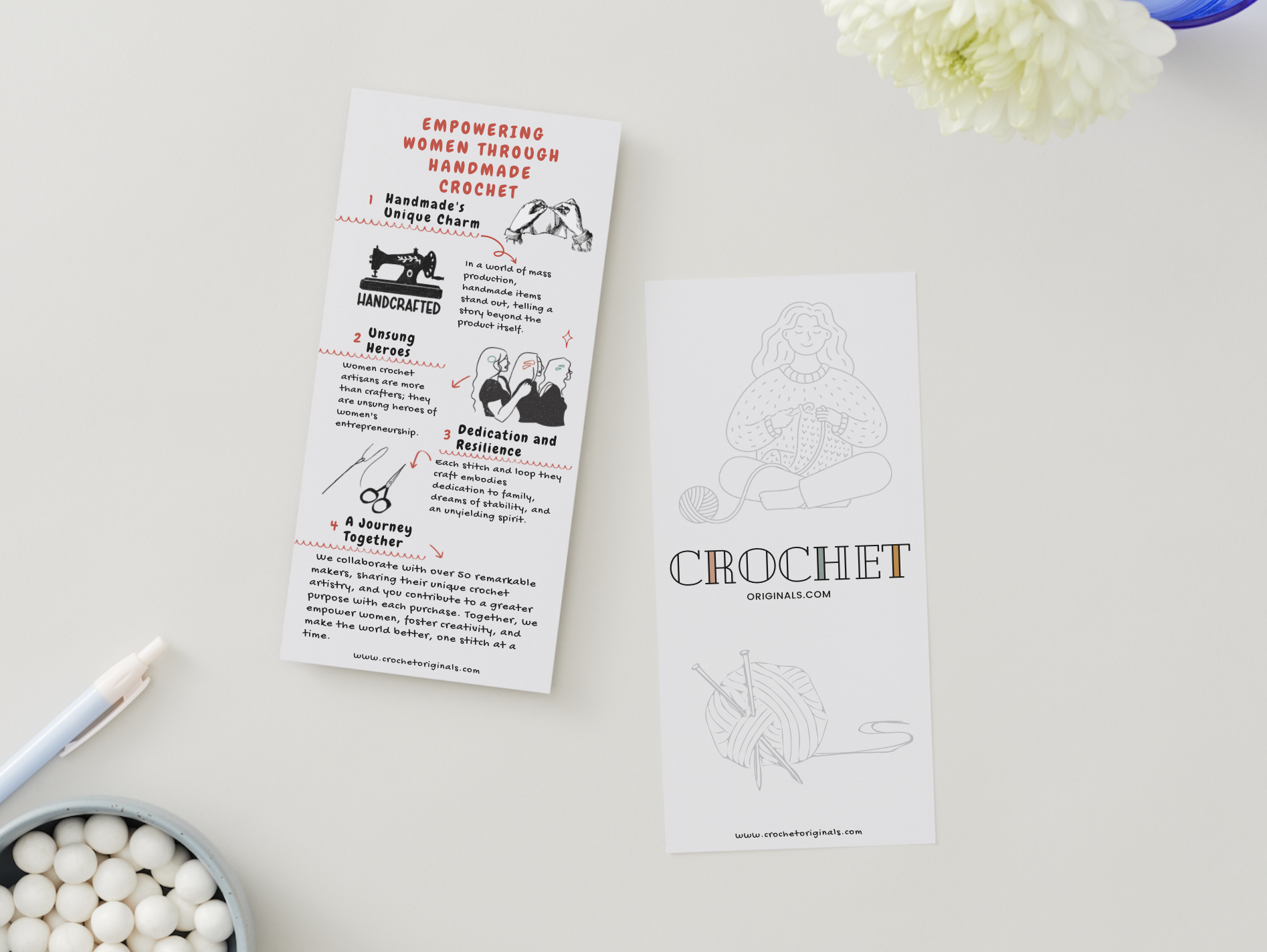 Created infographic flyers and brand identity materials for a women-empowering handmade crochet business.